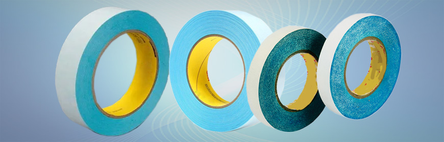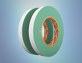 Double-sided Repulpable splicing tape for splicing paper webs in the paper production and printing industries. A green color coated repulpable splicing tape covered with a center-slit, repulpable paper liner and laminated with a single coated, non-repulpable masking tape strip, which is removable to help position tape on the paper roll. We are your trusted industry partner for self-adhesive repulpable tape solutions for paper industry